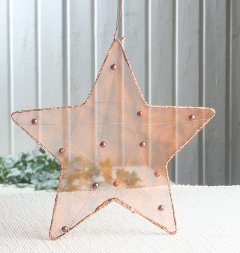 Material: Draht, Organza-Stoff, Glitzer, Perlen Größe: ca. 20 cm Ø