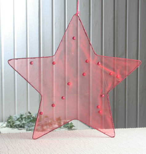 Anhänger "Organza-Stern Rot", Größe L, Rot/Glitzer/Perlen