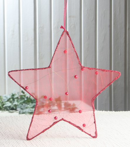 Material: Draht, Organza-Stoff, Glitzer, Perlen Größe: ca. 20 cm Ø