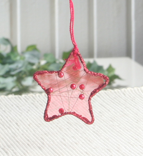 Material: Draht, Organza-Stoff, Glitzer, Perlen Größe: ca. 5 cm Ø