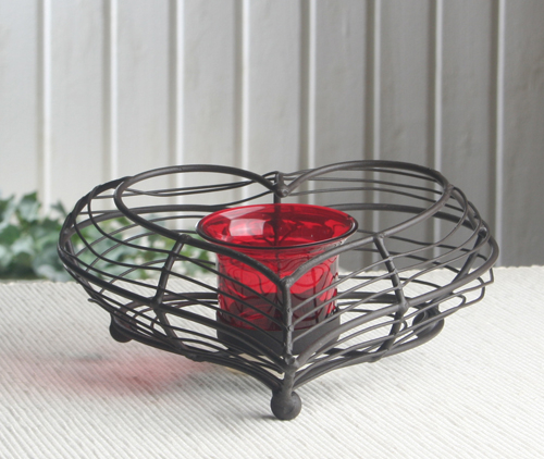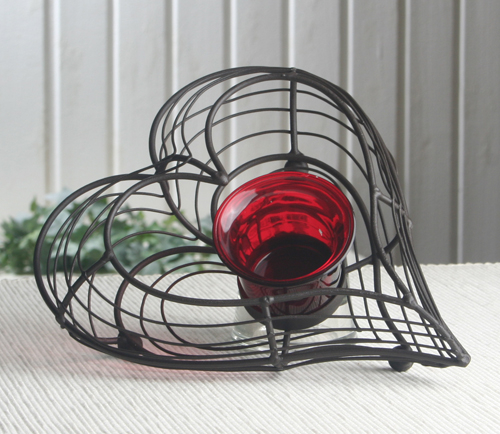 Dieses Metall- bzw. Gitterherz mit rotem Teelichtglas sorgt mit seiner antikrostigen Farbe für rustikale Akzente und bietet eine tolle Kombination aus "herzlichem" Chic und luftigem Design.