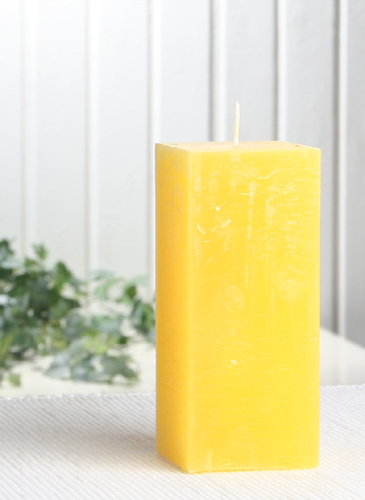 Sparpack: 12x Rustik-Stumpenkerze, viereckig, 12 x 5 x 5 cm Ø, zitronengelb
