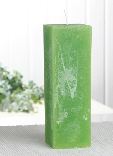Sparpack: 12x Rustik-Stumpenkerze, viereckig, 15 x 5 x 5 cm Ø, apfelgrün
