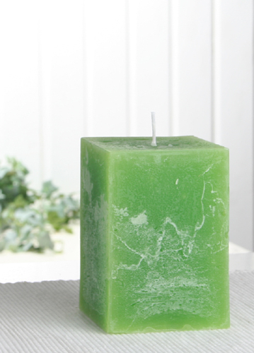 Sparpack: 6x Rustik-Stumpenkerze, viereckig, 10 x 7,5 x 7,5 cm Ø, apfelgrün
