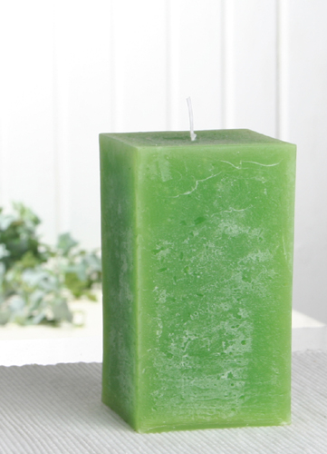 Sparpack: 6x Rustik-Stumpenkerze, viereckig, 12 x 7,5 x 7,5 cm Ø, apfelgrün