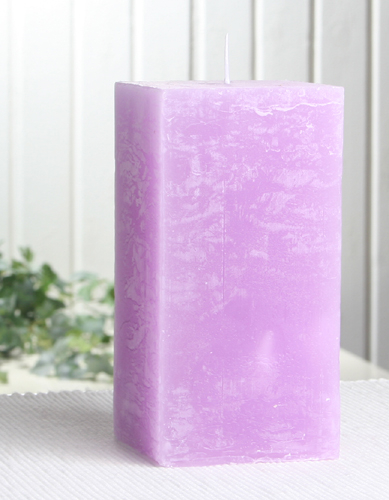 Sparpack: 6x Rustik-Stumpenkerze, viereckig, 15 x 7,5 x 7,5 cm, flieder