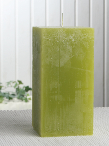 Sparpack: 6x Rustik-Stumpenkerze, viereckig, 15 x 7,5x7,5 cm Ø, pistaziengrün