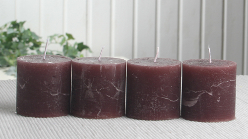 SET: 4x Rustik-Stumpenkerze, 5 x 5 cm Ø, pflaume-burgund