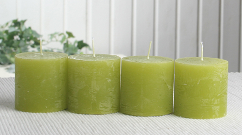 SET: 4x Rustik-Stumpenkerze, 5 x 5 cm Ø, pistaziengrün