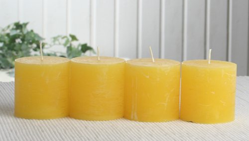 SET: 4x Rustik-Stumpenkerze, 5 x 5 cm Ø, zitronengelb