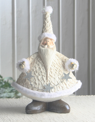 Dieser Weihnachtsmann sorgt sofort für weihnachtliche Vorfreude. Mit seinem breiten Bauch und dem proportional kleinen Kopf hat er eine ulkige Figur. In den Händen hält er eine Sternenkette.