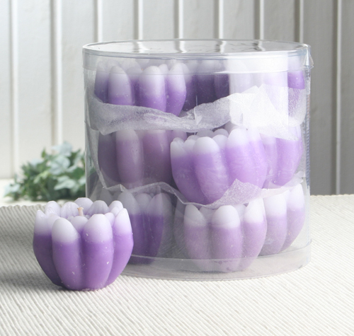 Dieser Posten ist ein Farbmix aus lila- und flieder-farbenen Schwimmkerzen.