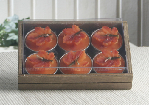 Schöne Deko-Teelichter in Form eines naturgetreu bemalten Herbstblattes.