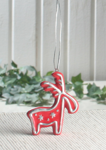 Schöner kleiner Anhänger aus der Keramik-Elch-Serie "Knut". Ein Band zum Aufhängen ist bereits befestigt.
