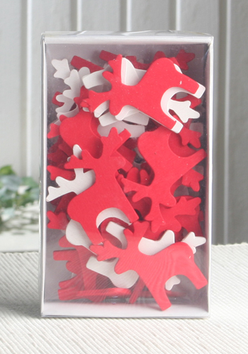 Dieses Set besteht aus 48 Teilen – 24 Elche in weiß und 24 Elche in rot. Die Elche sind beidseitig bemalt und eignen sich für verschiedene Bastelarbeiten, zum Dekorieren und vieles mehr.