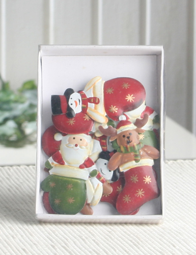 Dieses Set besteht aus insgesamt 12 Metallstreuteilen mit weihnachtlichen Motiven im Handschuh/Söcken-Look (circa 4 x Schneemann im Handschuh, 4 x Weihnachtsmann im Handschuh, 4 x Rentier im Söckchen). Die Metallstreuteile sind geprägt, einseitig bemalt und eignen sich für verschiedene Bastelarbeiten, zum Dekorieren und vieles mehr.